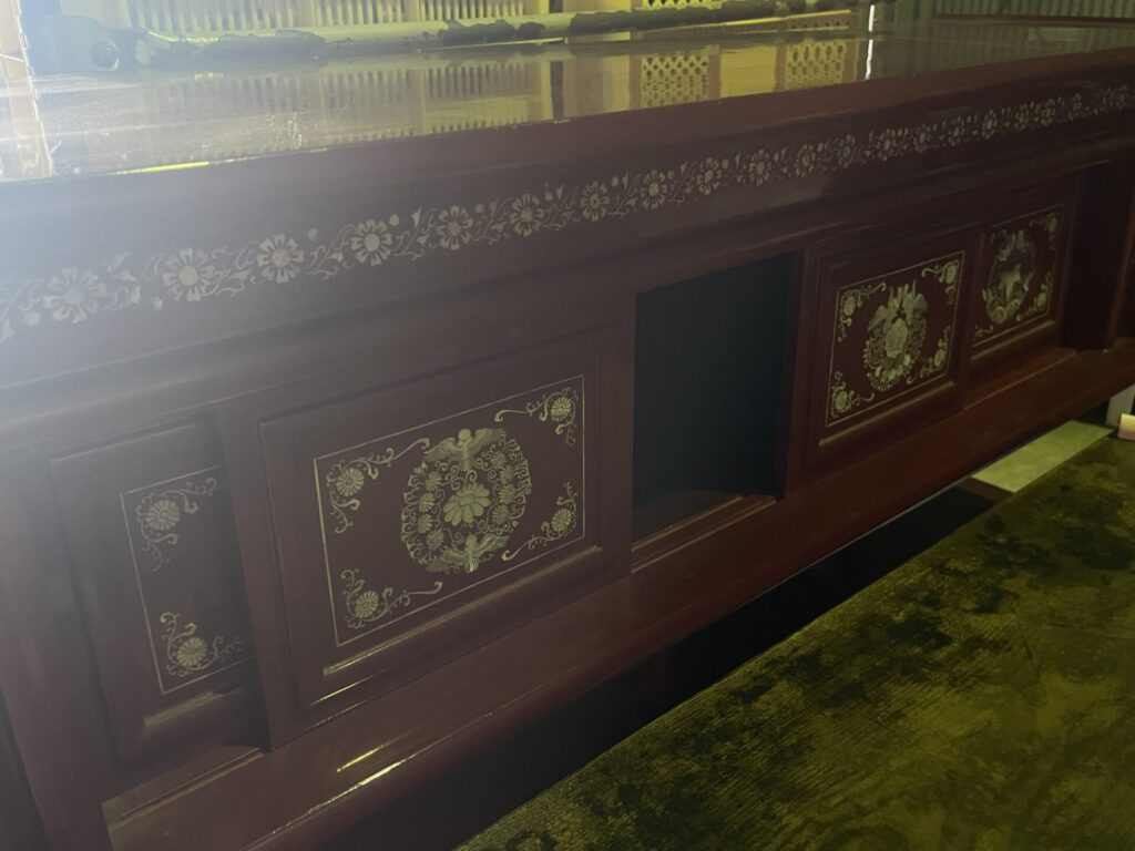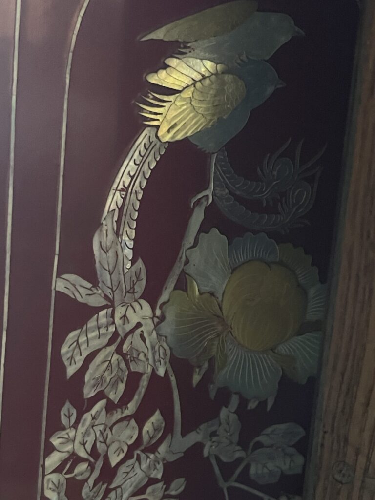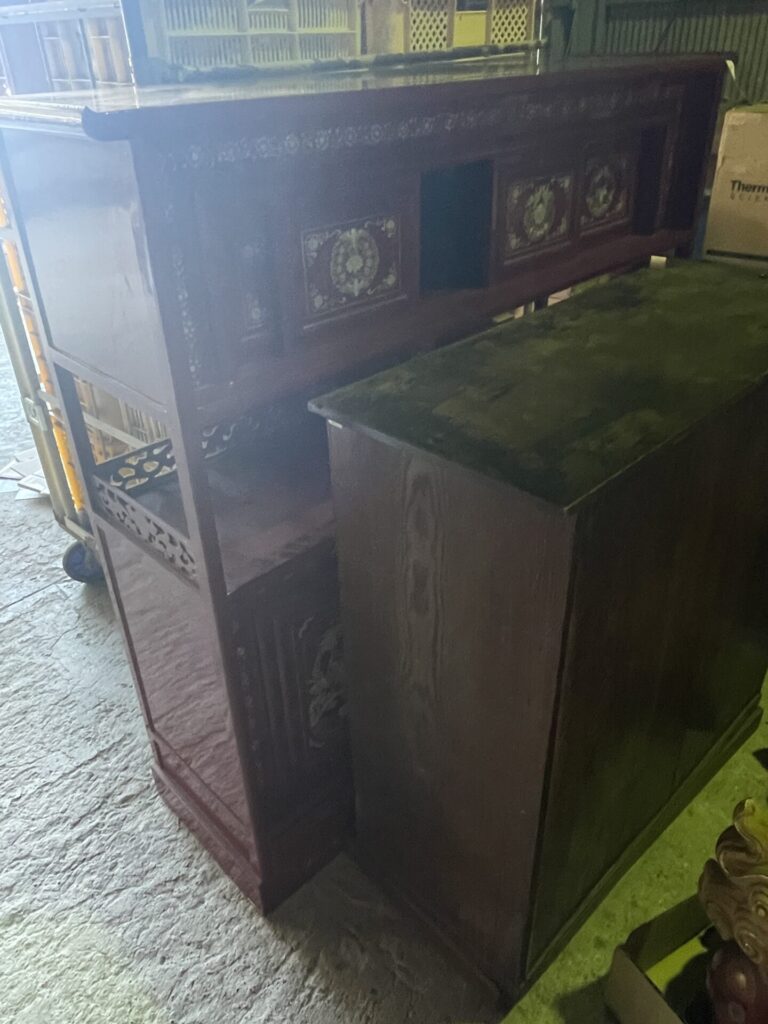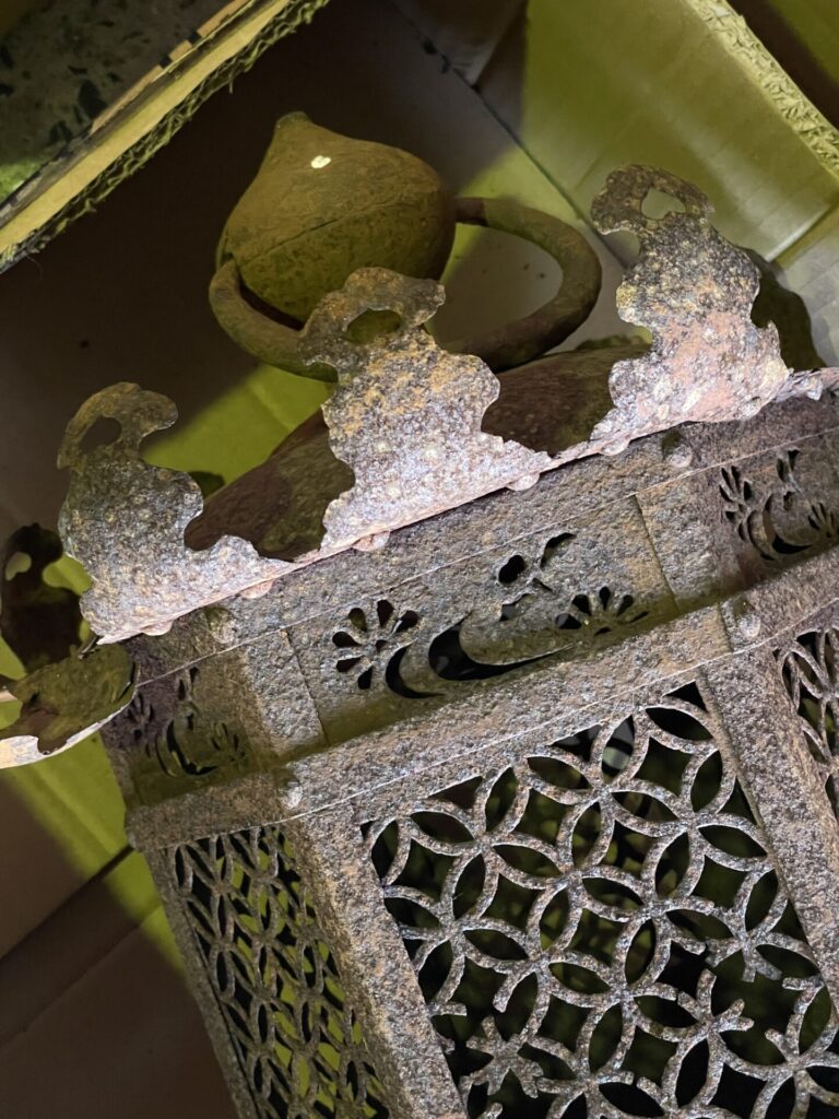 灯篭はとくに長年使う機会もない為蔵にしまい込んでいたものだそうで、錆などはありましたが、表面のデザインが細かく珍しいもので、茶箪笥にも螺鈿細工など細かな細工が入っていましたので、