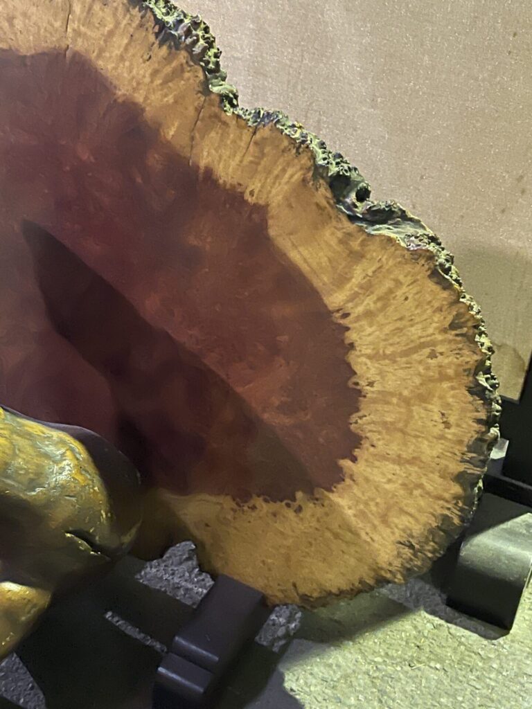 天板に出ているような、細かく渦を巻いたような木目が出ている、玉杢の作品は、