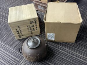 事務所への持ち込み買取にて、 九谷焼 清閑 煎茶器揃 ・ 備前焼 宝瓶など 茶道具・そのほかいろいろ、買取させていただきました!