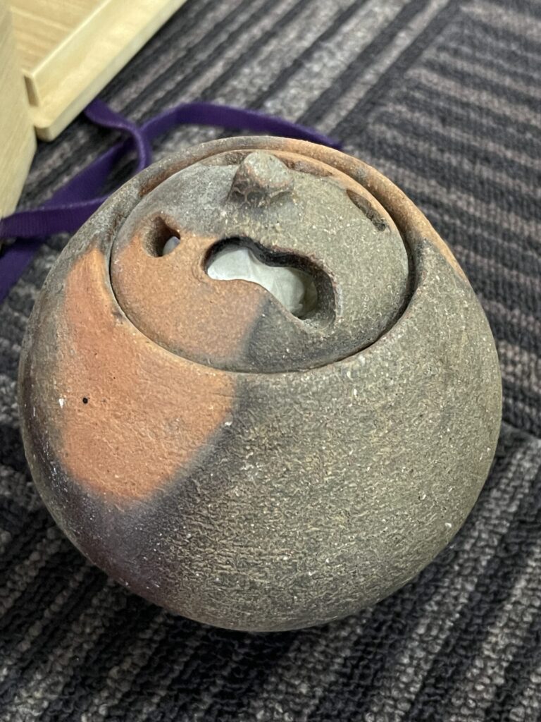 中国の茶器(朱泥の急須)・乾隆年製の銘の朱肉入れ・備前焼香炉・茶入など