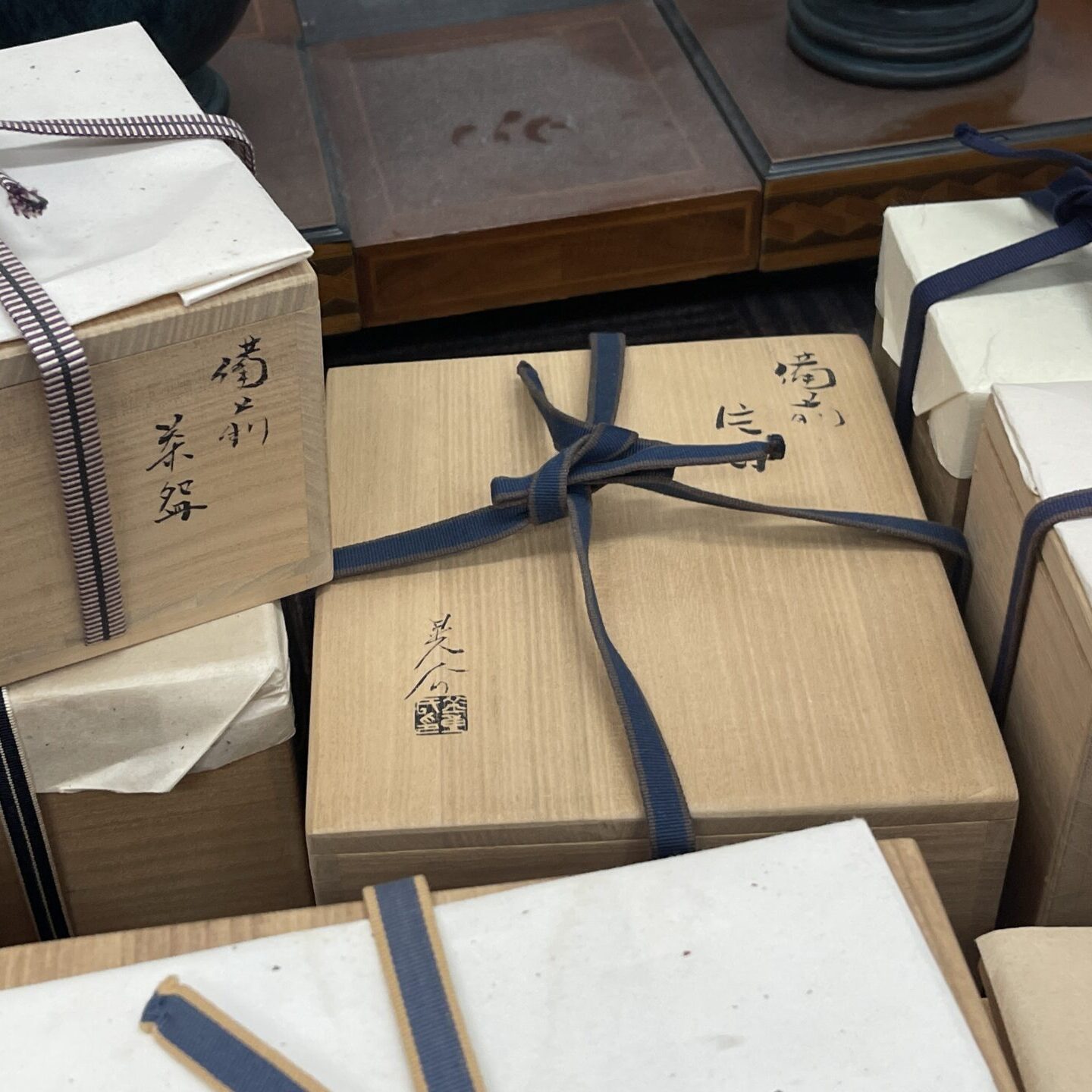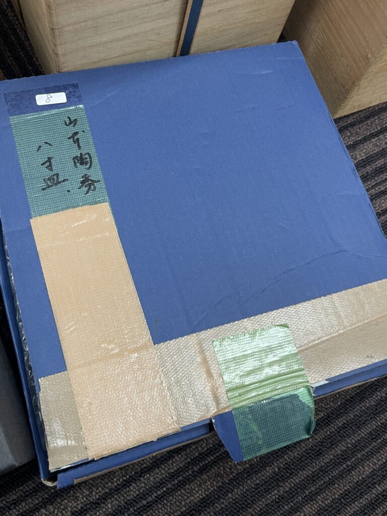 お客様は様々な陶磁器や工芸品の作家さんのコレクターで、以前にも当店をご利用いただいたことがあり、今回もたくさんのお品物をお持ちいただきました。